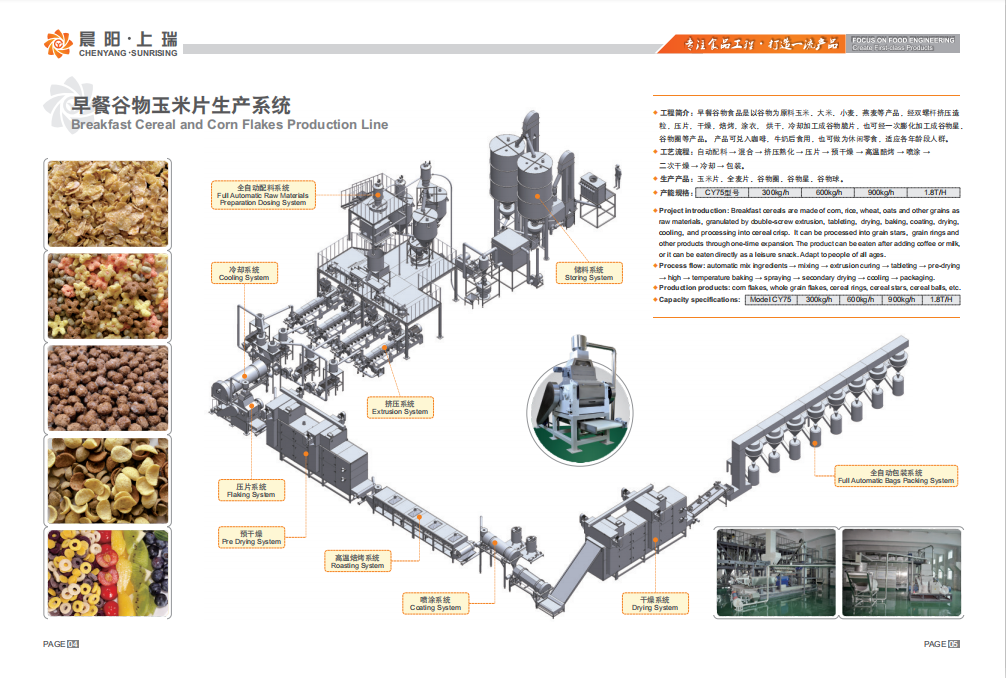 生產(chǎn)產(chǎn)品:玉米片、全麥片、谷物圈、谷物星、谷物球。