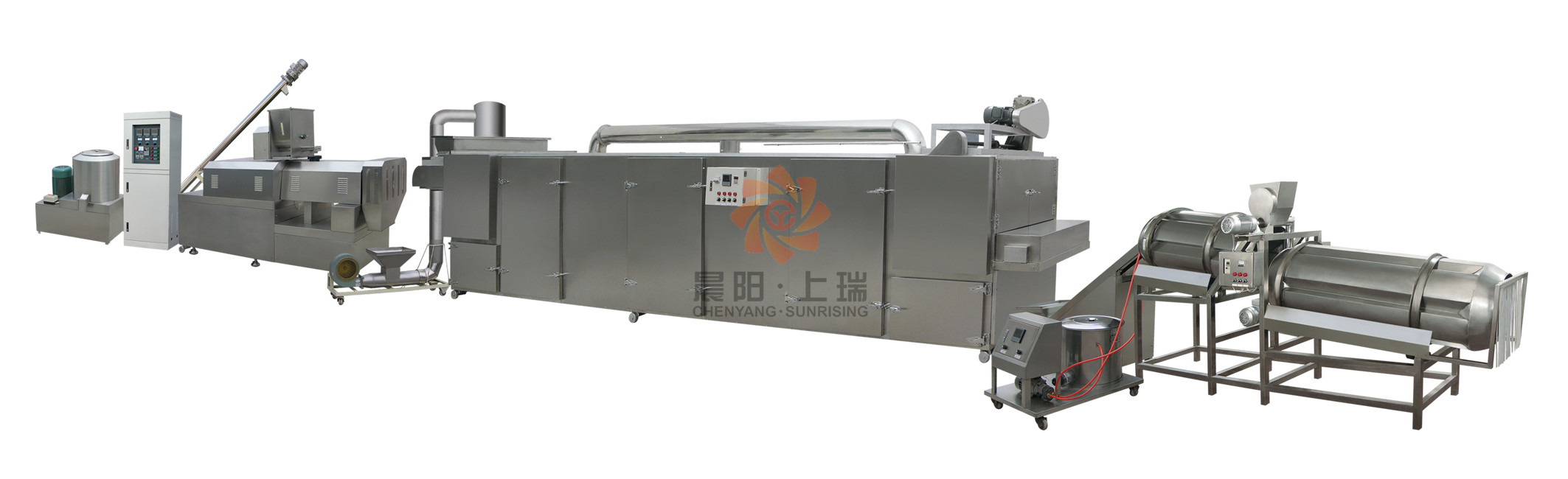 大家都知道:傳統(tǒng)的膨化狗糧顆粒,主要原料是淀粉類的谷物,主要是玉米,肉類超過了一定比例,就不能夠膨化成型,做出來的形狀就不夠美觀。所以,用傳統(tǒng)擠壓膨化工藝的設(shè)備生產(chǎn)出的狗糧顆粒,只能是低蛋白高淀粉類的顆粒。不能夠生產(chǎn)出高蛋白的狗糧顆粒,針對(duì)以上原因和市場(chǎng)需求的現(xiàn)實(shí),我們濟(jì)南晨陽科技有限公司,研發(fā)出一整套純?nèi)夤芳Z機(jī)器設(shè)備生產(chǎn)線,只為滿足高端狗糧需求者的客觀需求。