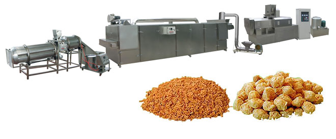 (3)拆絲:將脫水后的拉絲蛋白打散拆絲。把復(fù)水脫水后的拉絲蛋白置于快速打漿機(jī)中(鈍刀,轉(zhuǎn)速約500~1000rpm),打漿約2~3分鐘即可。也可用轉(zhuǎn)速達(dá)300rpm以上的擂潰機(jī)、攪拌機(jī)拆絲?;蛘邔匕铏C(jī)反轉(zhuǎn)(刀背)運(yùn)行1分鐘左右(切刀速度約500~1000rpm)?!±z蛋白產(chǎn)品具有極佳的結(jié)構(gòu)和真實(shí)肉質(zhì)纖維的組織,非常適合用于各類高級(jí)素食仿肉食品的加工,如素火腿、素雞、素魚、素漢堡、素?zé)峁贰⑺夭棂Z、素牛排、素肉松等。產(chǎn)品本身亦具有良好的吸水性、保油性,經(jīng)過適當(dāng)?shù)募庸ぜ夹g(shù)后,是一種理想的高蛋白肉制品添加物,在肉制品應(yīng)用中,可達(dá)到增強(qiáng)肉感,降低成本,提高產(chǎn)品中的蛋白質(zhì)含量的目的。如應(yīng)用于肉糜腸類、西式火腿、肉丸類、重組排類(雞排、豬排等)、油炸雞塊、漢堡肉類餃子、包子、肉粽等速凍肉制品中;用于諸如仿肉牛肉干,重組牛肉粒,葷素肉松等休閑食品也是絕佳的選擇。拉絲蛋白產(chǎn)品復(fù)水即可調(diào)理制作菜肴或代替部分肉品使用,因此可直接供食堂、配餐公司、餐廳等選購。本品不僅操作方便,也倡導(dǎo)了健康營養(yǎng)的飲食新概念,同時(shí)可達(dá)到降低成本的效果(不到瘦肉成本的1/2),為一新潮流趨勢的食材選擇。