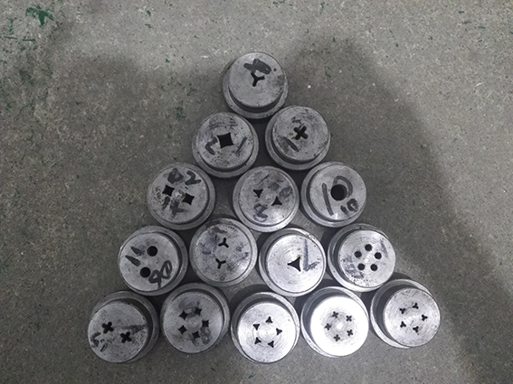 簡單聊聊:具有多種孔型組合的寵物詞料成型模具,設(shè)置可生產(chǎn)出圖形寵物飼料的圖形顆粒模具和可生產(chǎn)出異 形寵物詞料的異形顆粒模具,從而使用一個(gè)模具即可同時(shí)生產(chǎn)出多種形狀的寵物詞料,并且圖形顆粒模具和 異形顆粒模具均為可拆卸地安裝于模具座上,從而可根據(jù)不同的生產(chǎn)需求來分別確定圖形顆粒模具和異形顆 粒模具的安裝數(shù)量、分布和形狀組合,從而在轉(zhuǎn)產(chǎn)時(shí)無需將模具座從螺旋擠壓膨化機(jī)構(gòu)上拆卸下來,而是對 模具座的顆粒模具組進(jìn)行調(diào)整即可,大大地減輕工作量,提高生產(chǎn)效率,無需購置多個(gè)具有不同模孔組合的 模具座,生產(chǎn)成本降低。而且可根據(jù)不同形狀的產(chǎn)品的混合比例來設(shè)置圖形顆粒模具和異形顆粒模具的安裝 數(shù)量,從而即時(shí)生產(chǎn)出符合混合比例的產(chǎn)品,避免了現(xiàn)有寵物詞料生產(chǎn)中需要對成品進(jìn)行混合的操作。