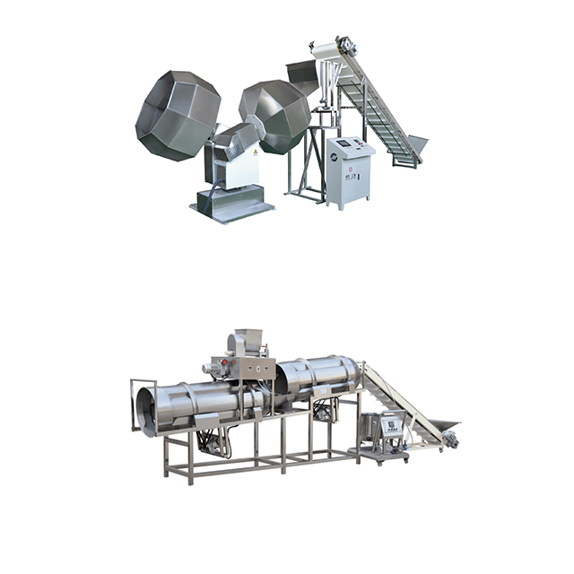1. 產(chǎn)量與連續(xù)性:雙滾筒調味設備主要用于休閑膨化食品、寵物食品的表面噴油與調味,具有產(chǎn)量高、可連續(xù)作業(yè)的特點,非常適合大規(guī)模生產(chǎn)線使用。