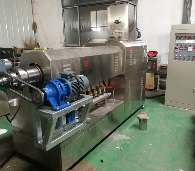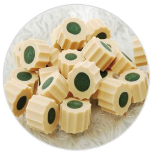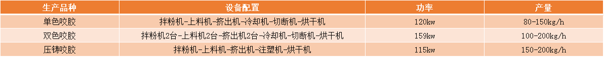 直接擠出型咬膠主要加工條狀、棒狀雙色咬膠,其形狀通過(guò)磨具擠壓后直接定型,通過(guò)切斷機(jī)切斷后達(dá)到要求的理想尺寸。其形狀根據(jù)產(chǎn)品要求開(kāi)模,五角星、五棱、六棱、十字、狗骨頭,、雙色熊掌、五花肉等形狀等。