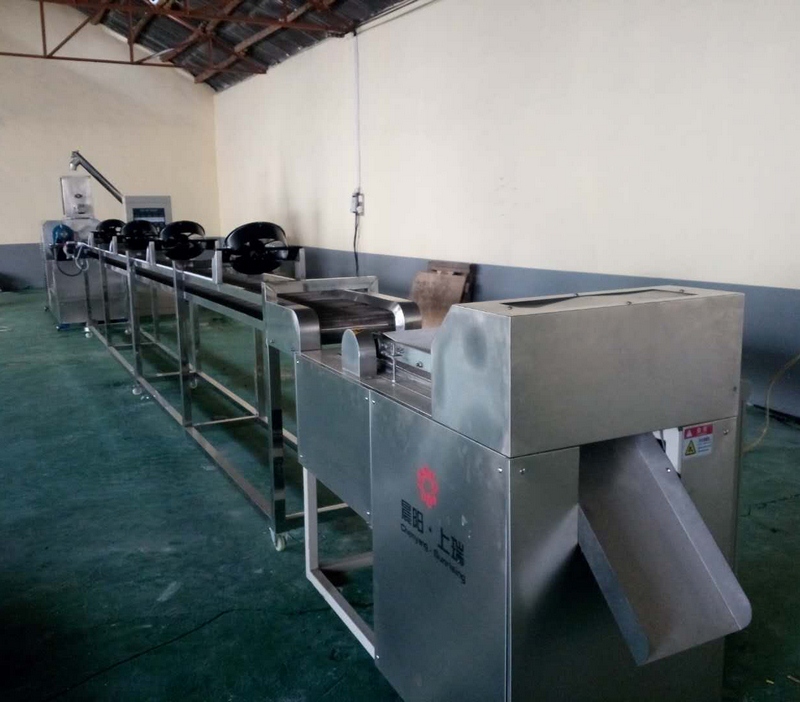 拌粉機(jī)→螺旋上料機(jī)→單螺擠出機(jī)→8米冷卻機(jī)→伺服切斷機(jī)